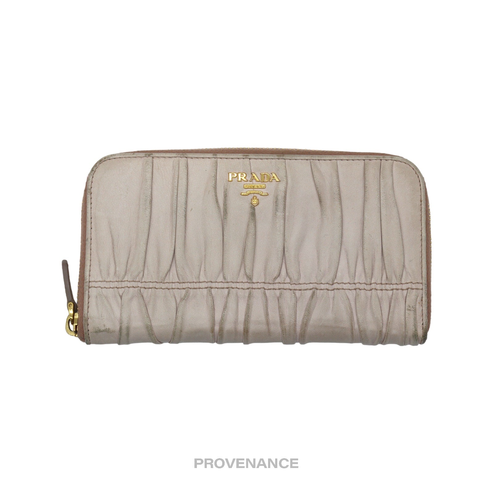🔴 Prada Zip Long Wallet - Blush Nappa Gaufre Leather