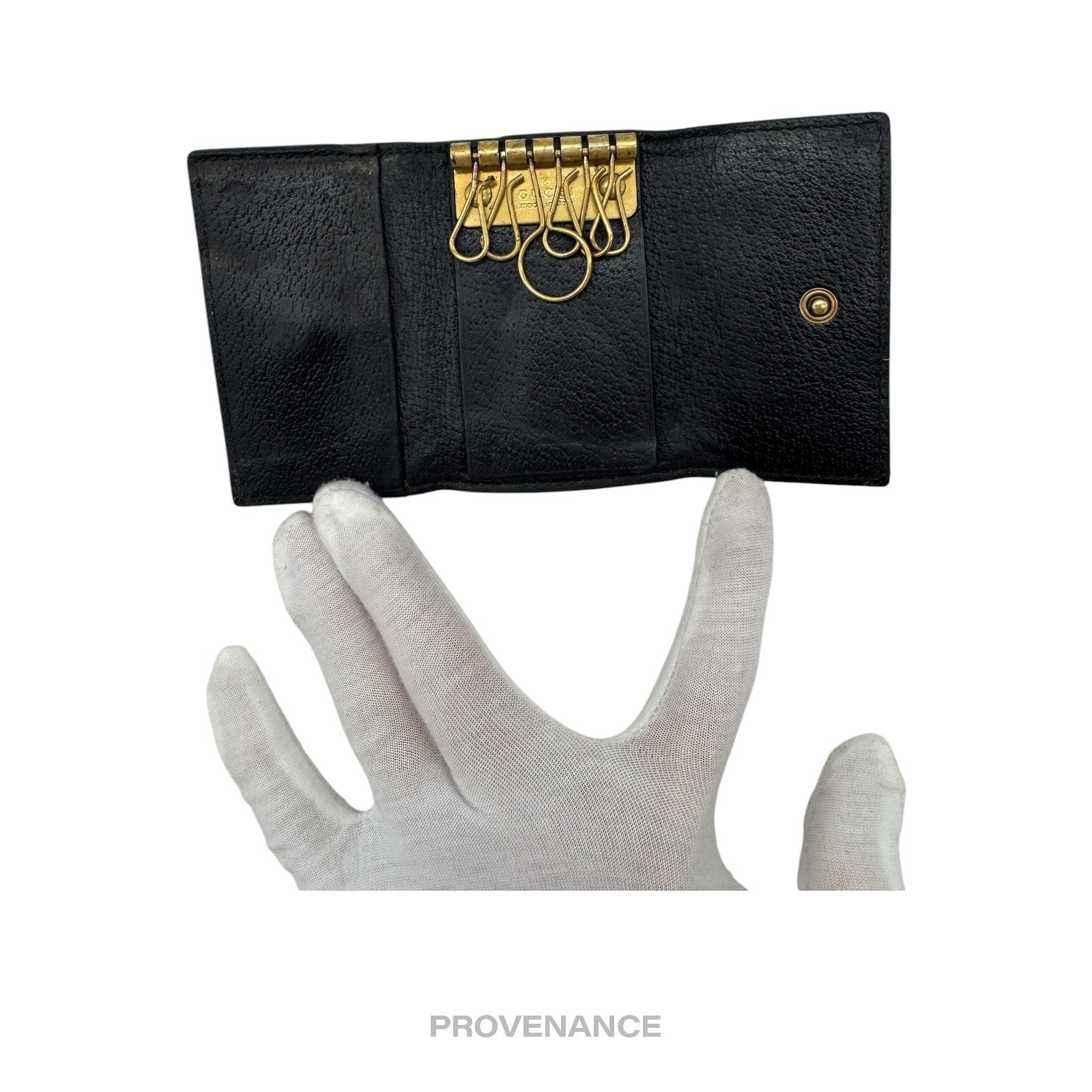 🔴 Gucci 6 Key Holder - Embroidered Bee Gold Black Leather