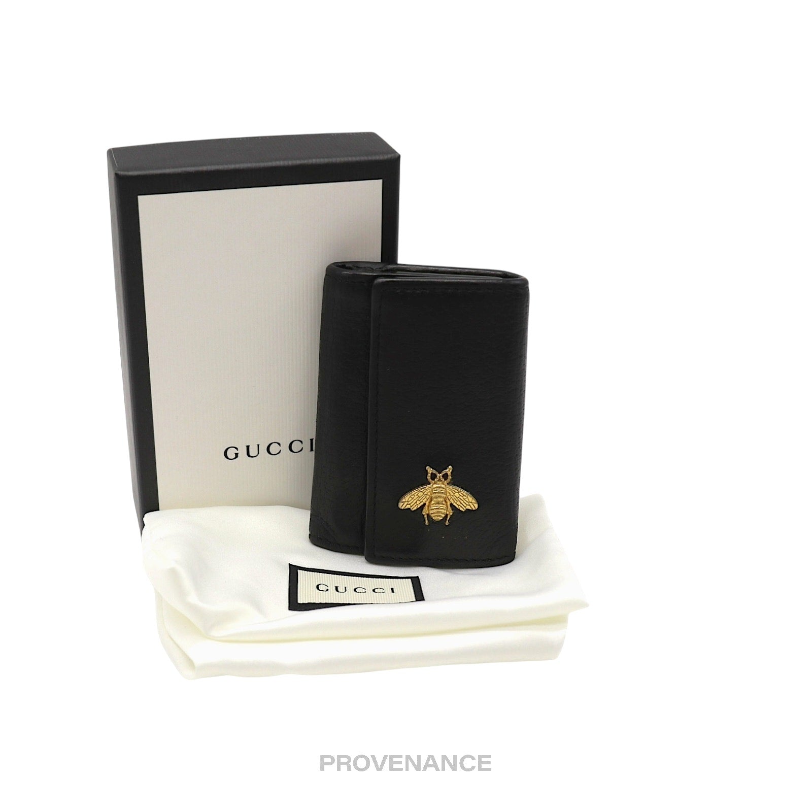 Gucci 6 Key Holder - Embroidered Bee Gold Black Leather