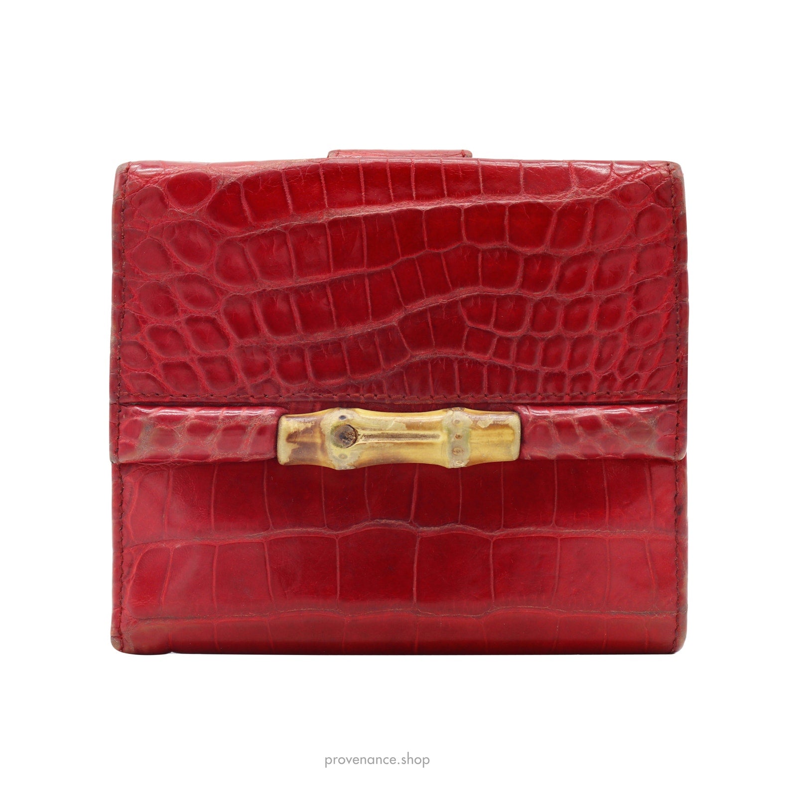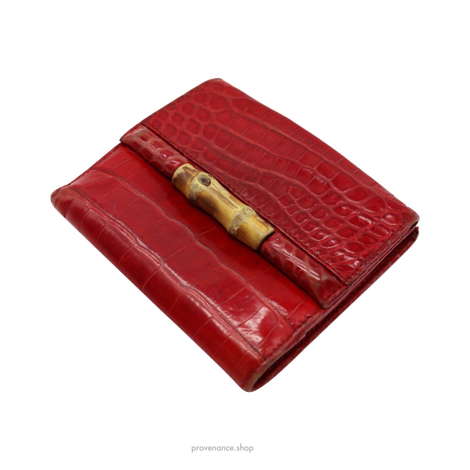 Gucci Bamboo Trifold Wallet - Red Crocodile Leather