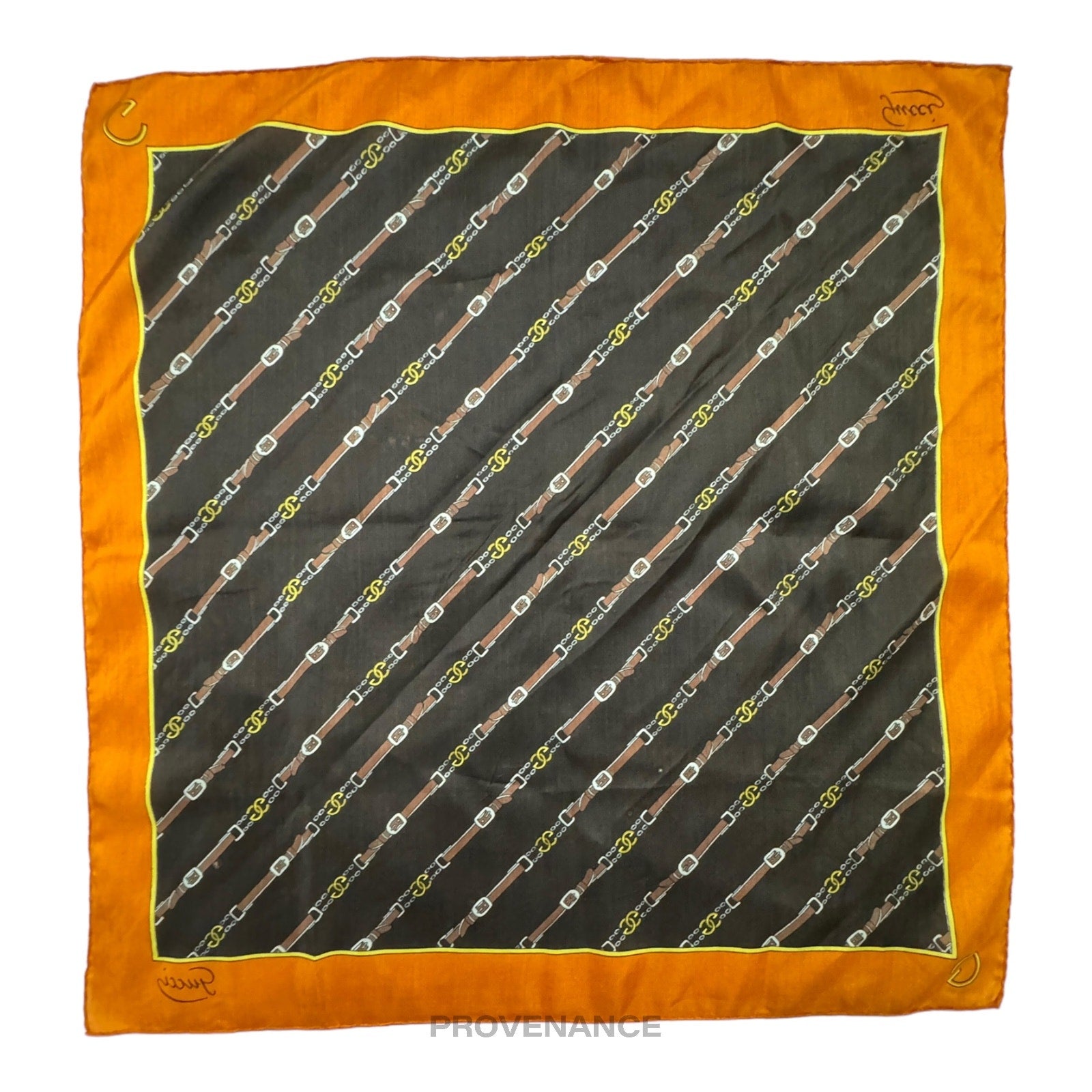 🔴 Gucci GG Logo Belt Silk Scarf 54 - Chocolate/Orange