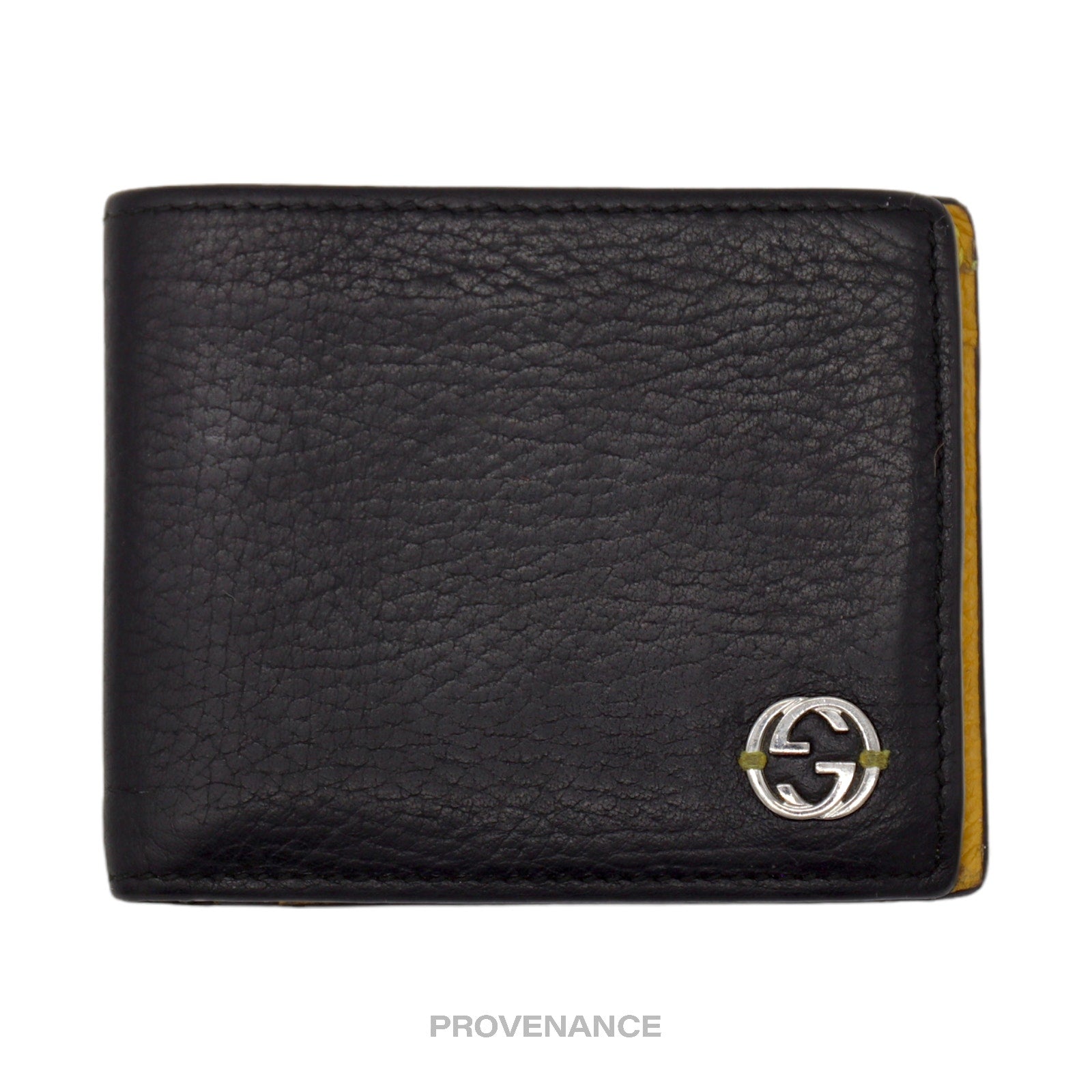 Gucci GG Logo Bifold Wallet - Black/Yellow Leather