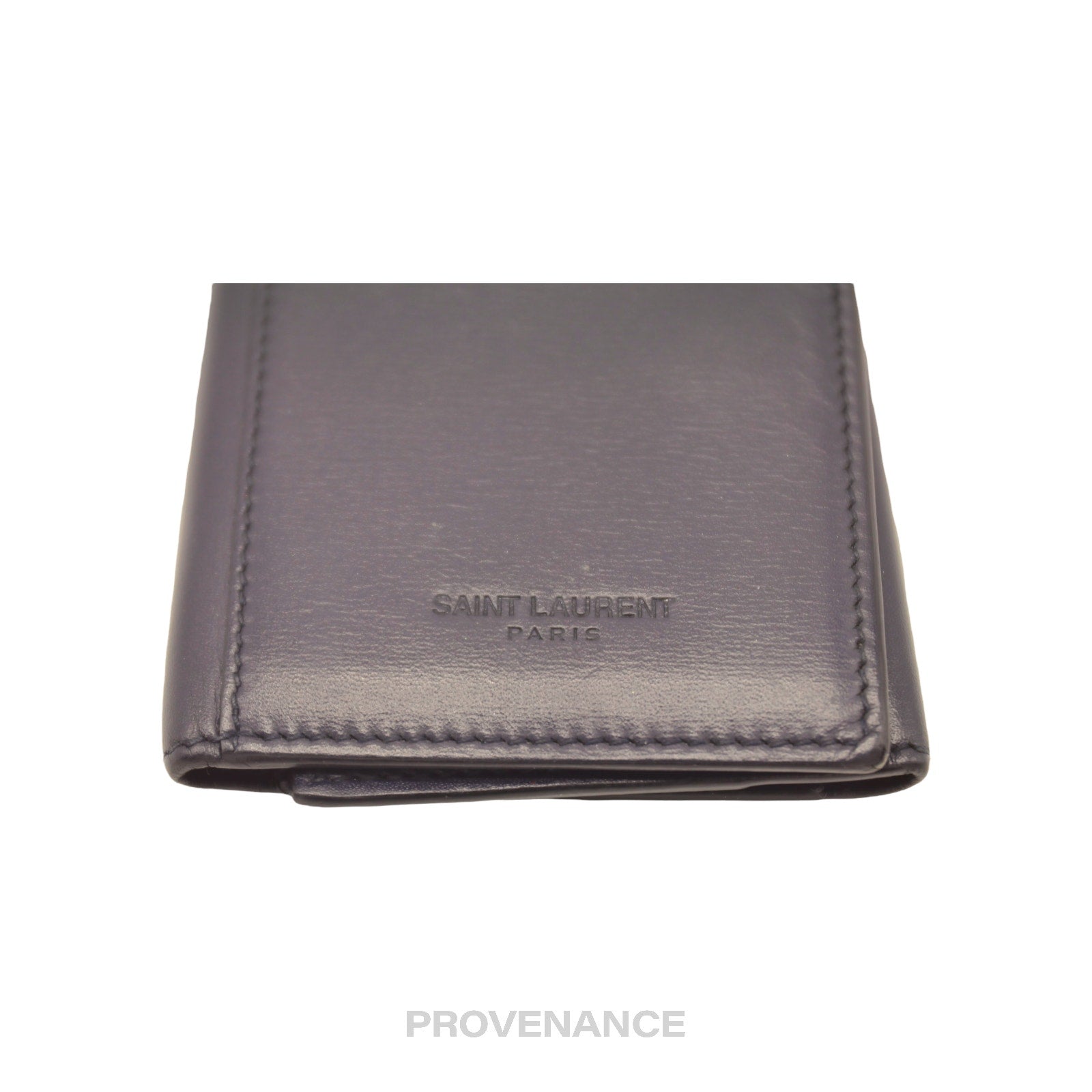 Saint Laurent Paris SLP Key Card Wallet - Navy Calfskin Leather